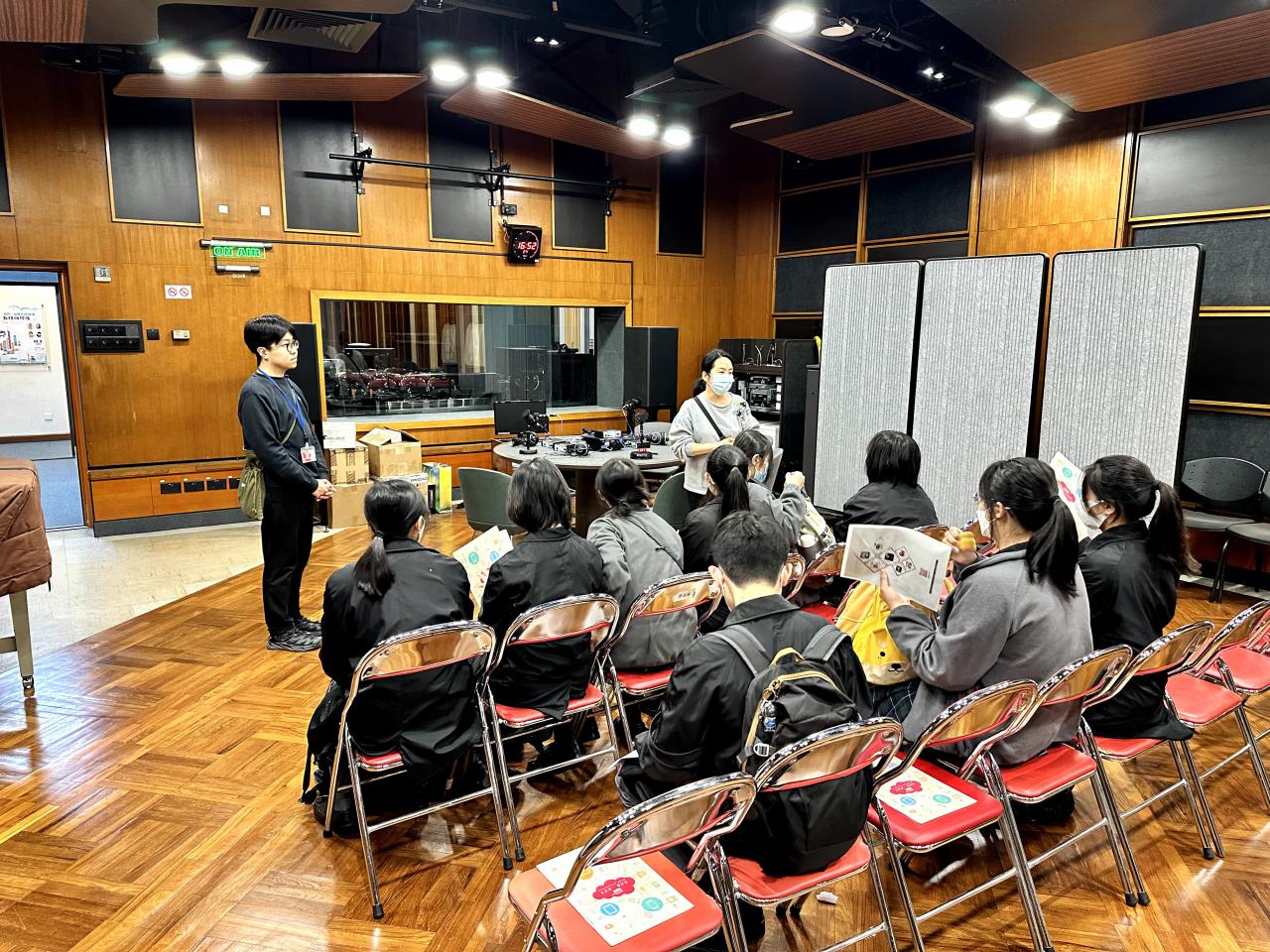 本校生涯規劃組與攝影學會合辦於2024年2月27日參觀香港電台,讓同學認識香港電台的架構,了解公共廣播機構的服務,增加同學資訊素養的認識。電台主持李秋婷小姐向同學講解電台廣播運作及分享其日常工作,及後同學更可進入直播室體驗電台主持工作。