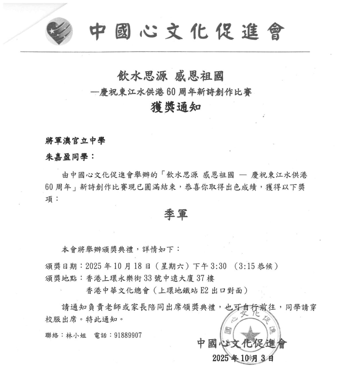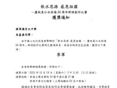 飲水思源 感恩祖國 - 慶祝東江水供港60周年新詩創作比賽