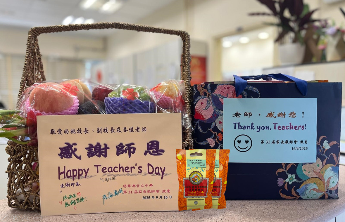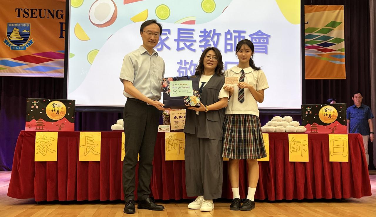 家長教師會於9月舉行敬師日,家教會挑選了梨子作為禮物向各位老師和職工致敬。主席徐太與家長委員先在早會上向同學簡單地介紹敬師日的由來,其後家教會代表聯同學生會同學一起把梨子和潤喉糖致送給校長、副校長和教師代表,儀式簡單而隆重,令全校上下洋溢暖意。