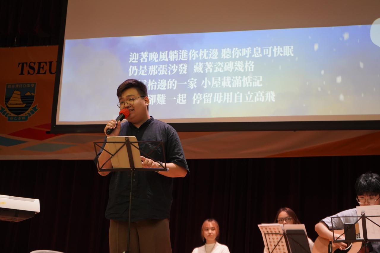 Members from the Chinese Lyric Creation Class of the Department of Humanities and Creation of Hong Kong Baptist University came to our school and had a music performance on August 28. The theme was about the stories of the eldery and lifes of homelessness. In the concert, the students were intoxicated by the wonderful music and lyrics creation, and included the technical elements of learning how to write lyrics.