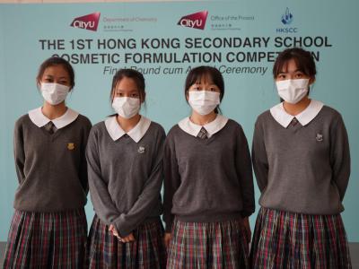 Four 5D students participated in the 1st Hong Kong Secondary School Cosmetic Formulation Competition, organized by the City University of Hong Kong (Department of Chemistry) and Hong Kong Society of Cosmetic Chemists. There were 31 participating schools in total and our school was shortlisted after the first round of elimination. The team participated in the final round and was awarded the prize of 1st runner-up. Congratulations!Four 5D students participated in the 1st Hong Kong Secondary School Cosmetic Formulation Competition, organized by the City University of Hong Kong (Department of Chemistry) and Hong Kong Society of Cosmetic Chemists. There were 31 participating schools in total and our school was shortlisted after the first round of elimination. The team participated in the final round and was awarded the prize of 1st runner-up. Congratulations!